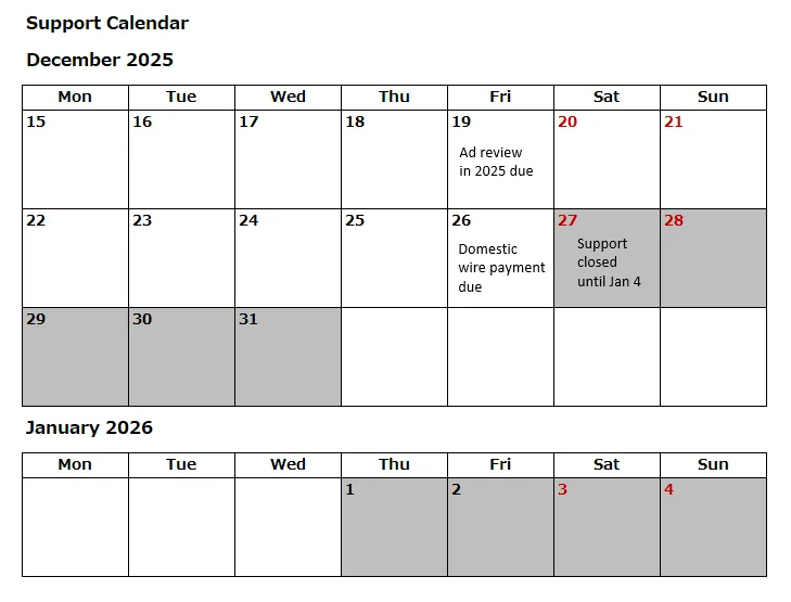 *Ads added after the due date will be reviewed after January 5, 2026.
