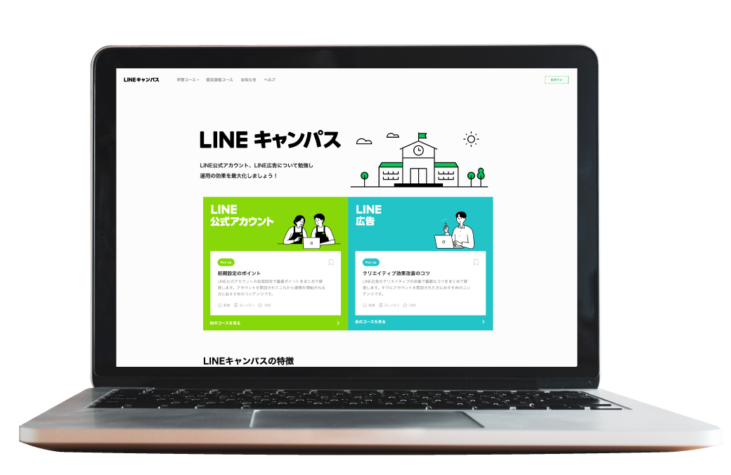 「LINEキャンパス」は、LINEが提供する法人向けサービス「LINE公式アカウント」と「LINE広告」に