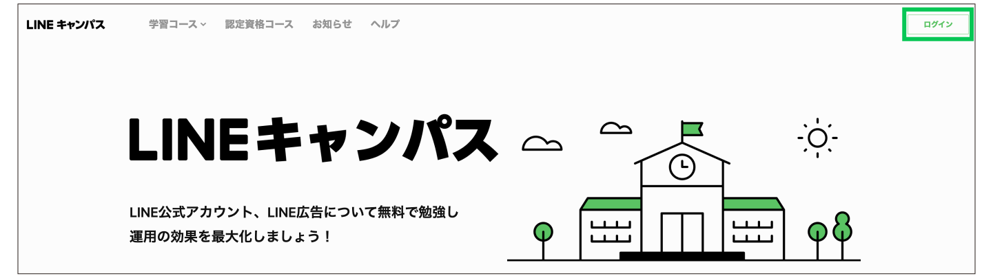 - ・LINEキャンパスのサイトにアクセスし、「ログイン」をクリックします。