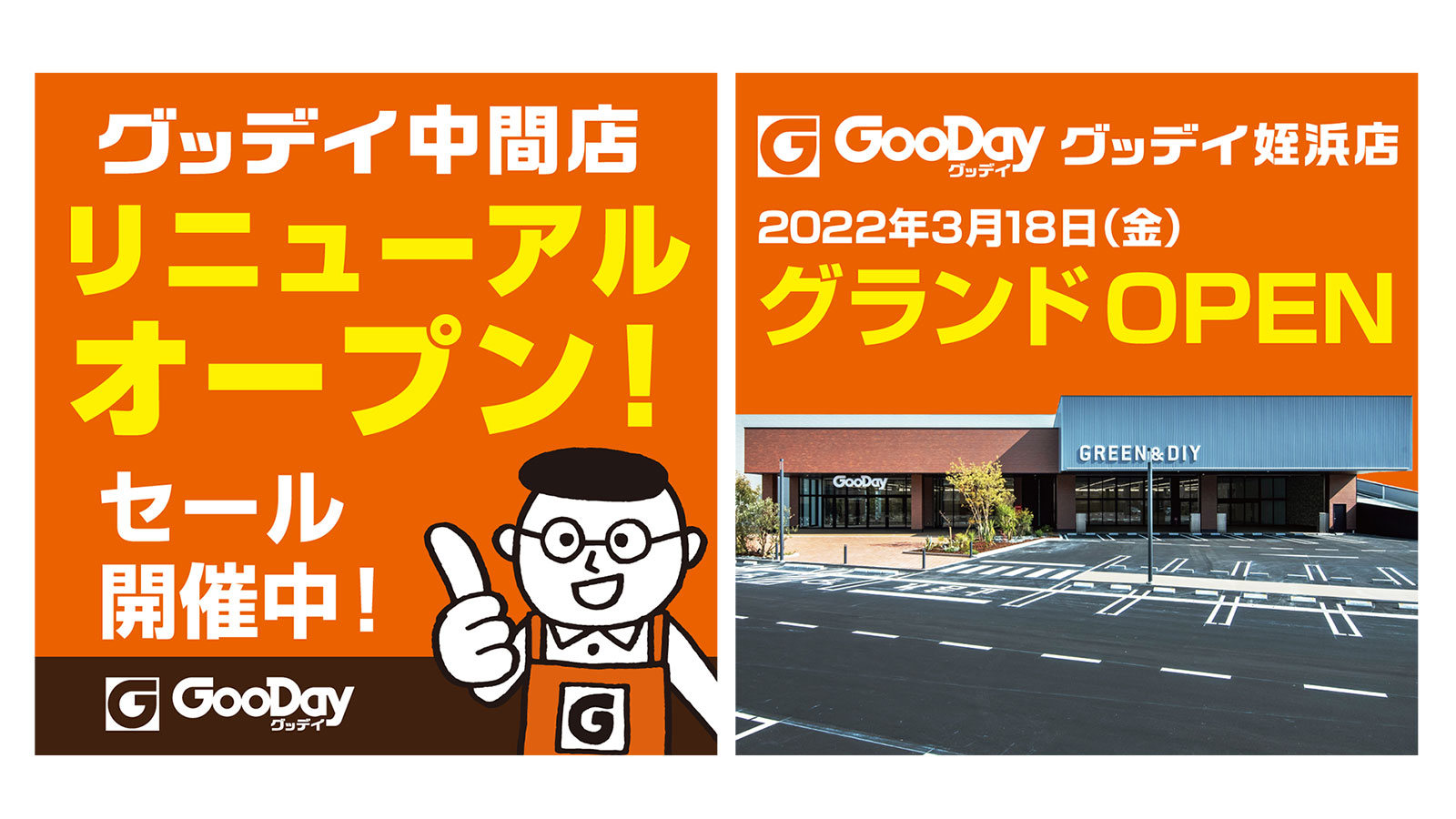 - グッデイの広告だとひと目でわかること(オリジナルキャラクターの使用、特徴的なオレンジ色の店舗外観など)