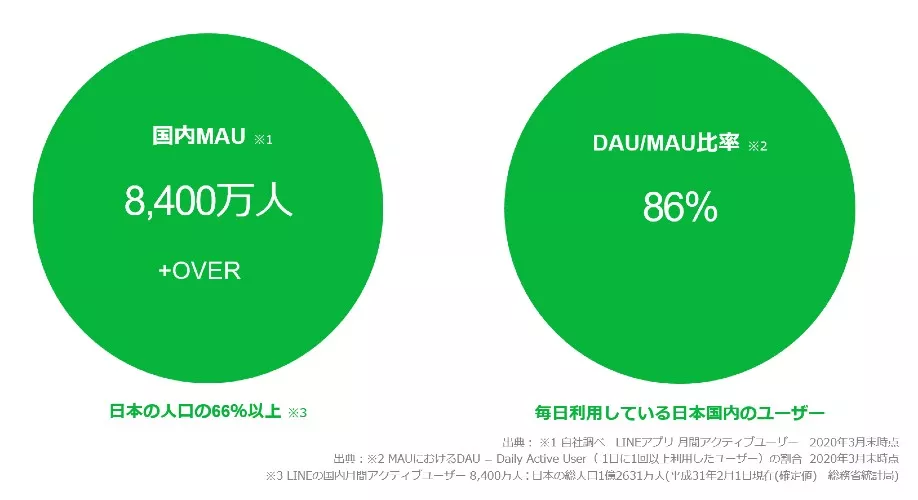 もし、訴求するコンテンツのターゲット人口に若年層が多い場合、SNS広告なども考慮しますが、8,400万人(2020年3月末時点)という圧倒的なユーザー数を持つLINEはどんな場面でも選択肢に入ってきます。