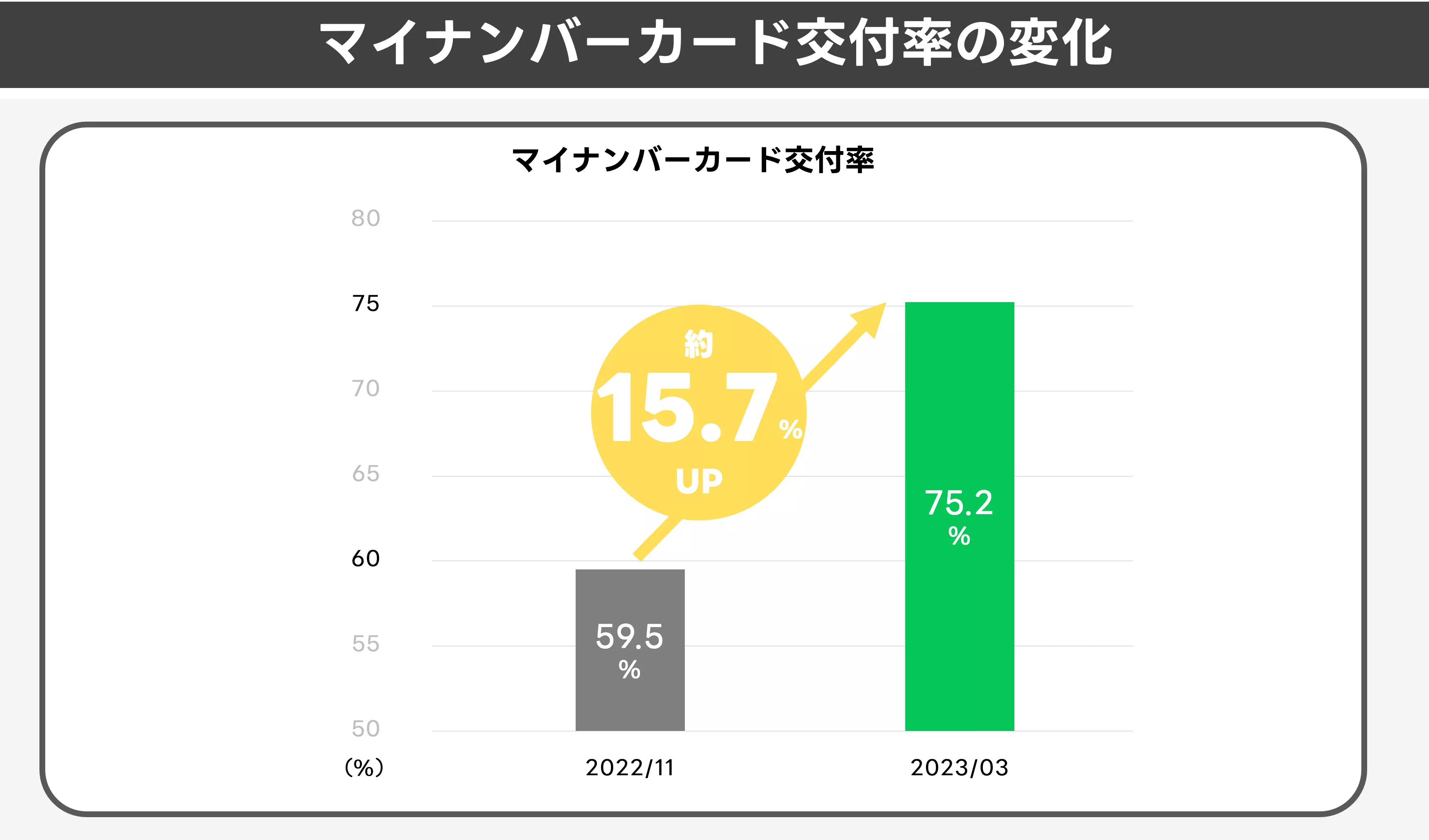 マイナンバーカードの交付率は、キャンペーン実施前(2022年11月末)で59.5%、2023年3月31日現在は75.2%となっています。