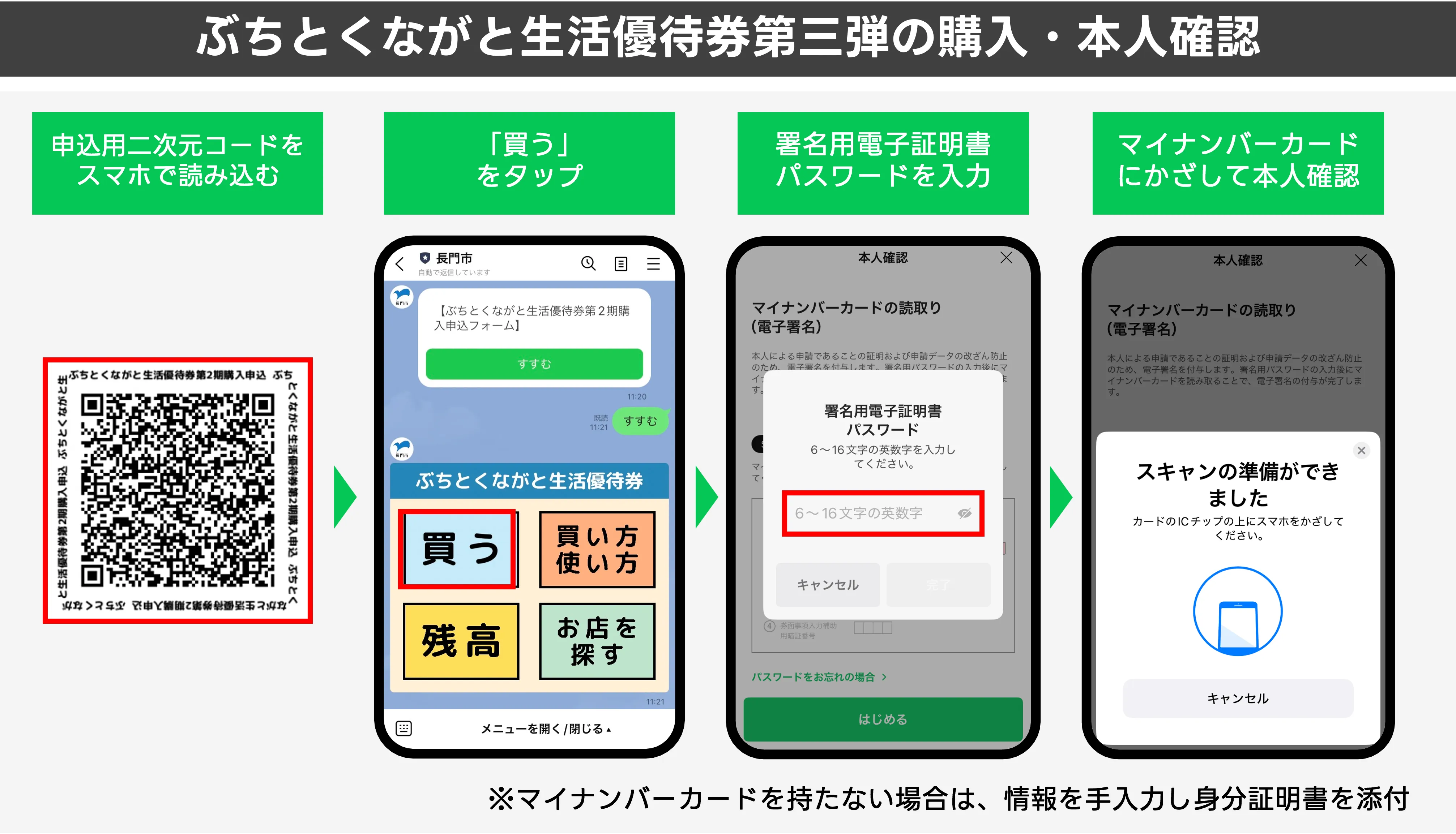 優待券は長門市に住民登録がある方が対象となります。市民であることを証明するため、LINE 公的個人認証サービス(JPKI)を活用しました。