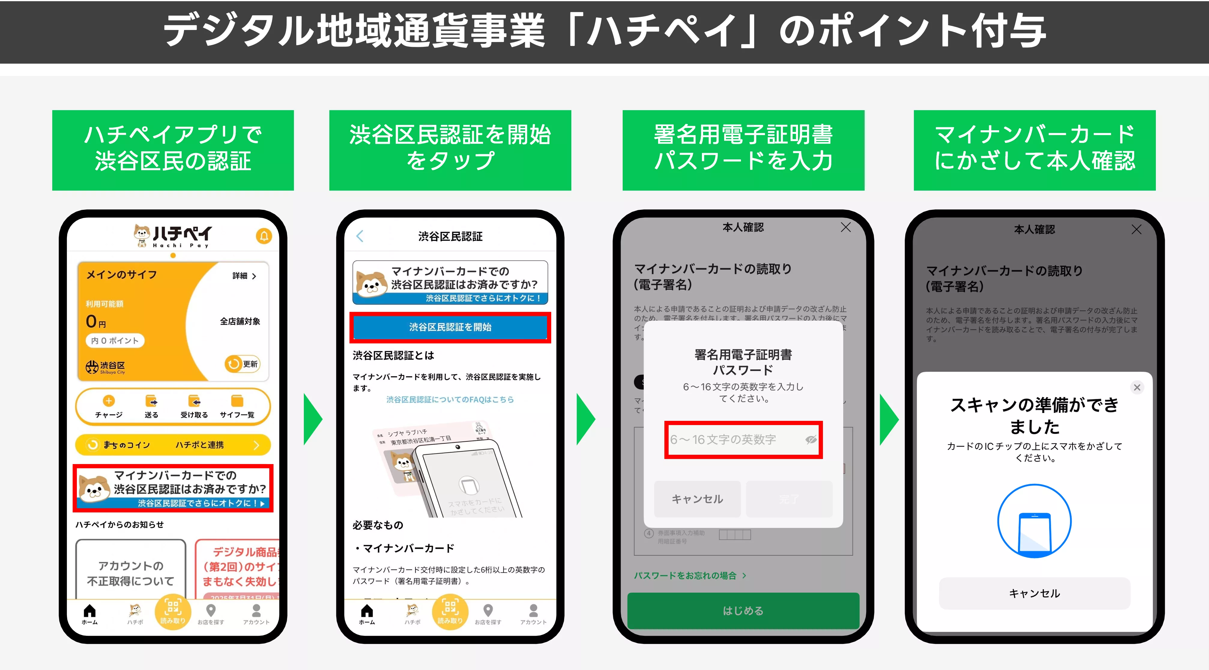 ・デジタル地域通貨事業「ハチペイ」の渋谷区民認証(1000ポイント還元)