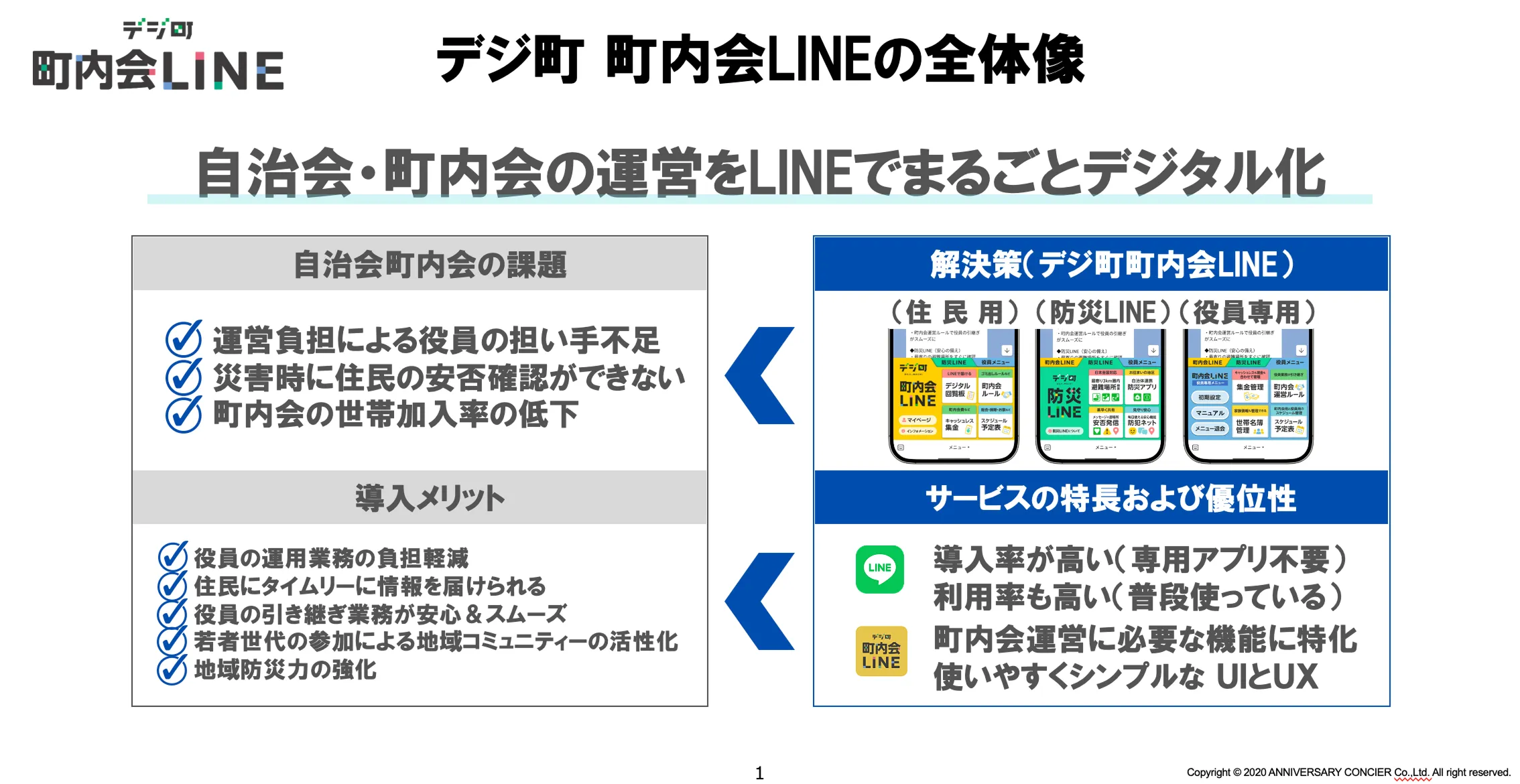 アニバーサリーコンシェル株式会社が提供する「デジ町 町内会LINE」は、自治会や町内会運営に必要な機能をLINE上に集約したサービスです。