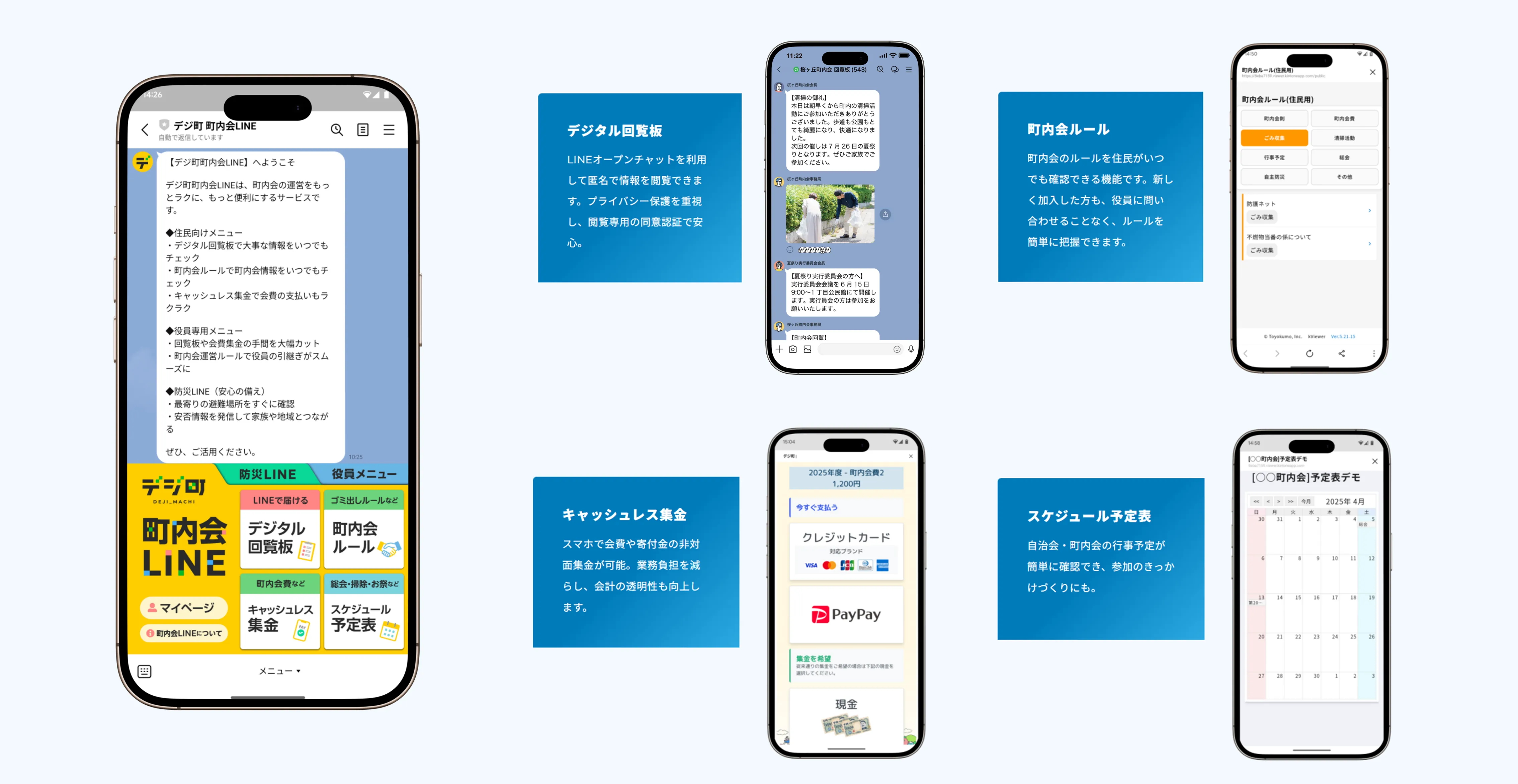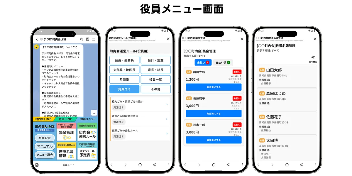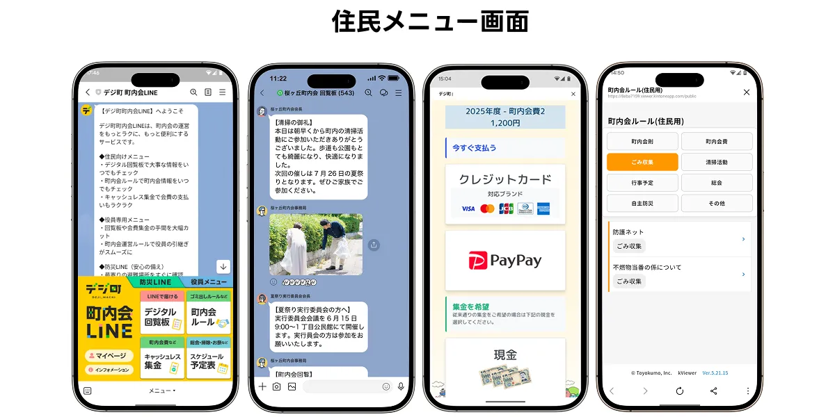ふだん使い慣れたLINE上で、情報発信から集金まで一元的に対応できる点が、現場の負担軽減や導入のしやすさにつながっており、多くの自治会役員の方々から好意的な声をいただいています。