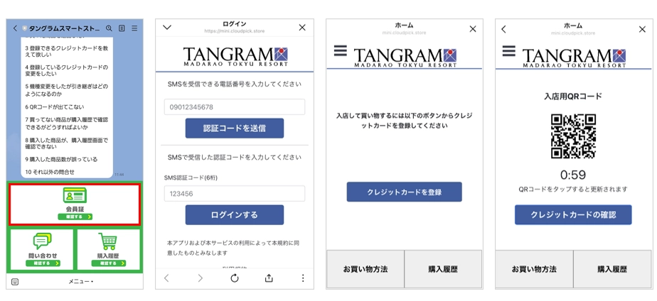 従来、ウォークスルー型無人店舗は、国内ではオフィス、工場といった閉鎖的で、繰り返しご利用頂き易い場所に出店しておりました。そして、ご利用頂く際に、専用スマホアプリをダウンロード頂くことで、繰り返し快適に買い物をお楽しみ頂くことができておりました。しかし今回ホテルでは、ホテル宿泊者様やスキー利用者様の多くは初めて利用されるため、専用スマホアプリでは、ダウンロードの障壁が比較的に高いのではないかと懸念しておりました。そこで、専用アプリの代わりに、LINE公式アカウントを利用した買い物をご利用いただけるようにしました。