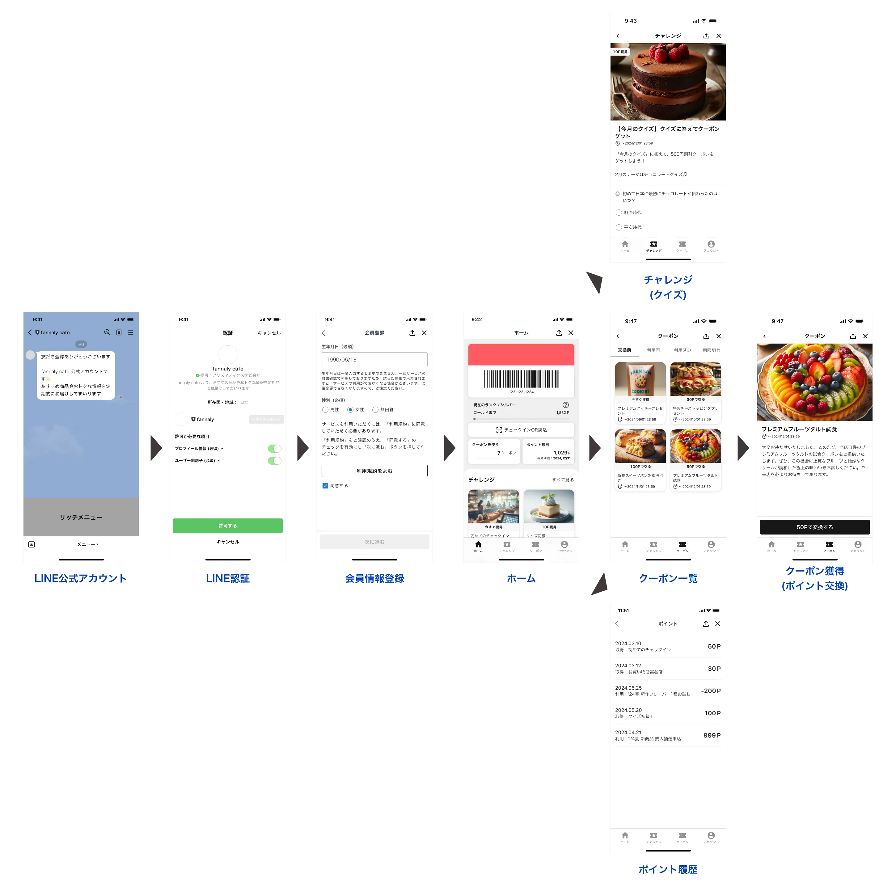 通常スマホアプリを使用しエンドユーザーの方に利用していただくには、アプリのダウンロードと会員登録をしていただく必要があり、大きな障壁となります。しかし、9,600万MAU(2023年9月末時点)の規模で、幅広い年代の方がLINEのプラットフォームを利用されています。これによりダウンロード不要・スムーズな会員登録が実現できるため、LINEアプリの活用を決めました。