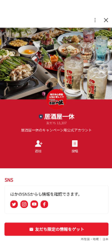 居酒屋一休のブランドと店舗のLINE公式アカウント(画像は池袋店)