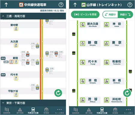 「JR東日本アプリ」で確認できる走行中の列車の現在地