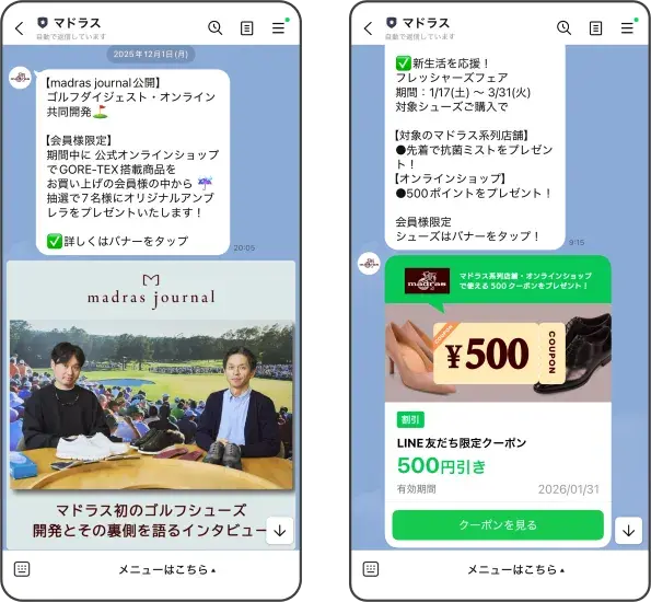 創業100年を超える老舗シューズメーカーとして、革靴からスニーカーまで幅広い商品を展開するマドラス株式会社(以下、マドラス)。同社は店舗とECを横断した顧客体験の向上を目指し、近年はデジタル施策の強化に取り組んできました。中でもLINE公式アカウントの活用は、メール中心だった顧客コミュニケーションを見直すきっかけとなり、会員情報との連携を軸にしたCRM施策によってECの売り上げにも着実な成果があらわれているといいます。