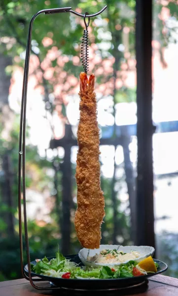 ――海老フライの大きさもさることながら、吊るした状態での盛り付けも話題になった要因のひとつではないかと思います。