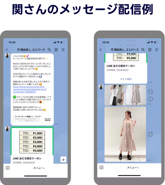 関さん:できれば来店してほしいという思いもあるのですが、“押し売り”のような圧を感じさせないように気を付けています。またメッセージの一斉配信はあえてせず、基本的にお客さまに合った内容を居住地や属性に合わせて個別に送るようにしています。