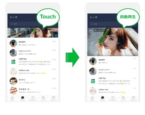 「Talk Head View」では、トークリスト最上部に表示される静止画バナーをタップすると画面が拡大して動画の再生が開始される
