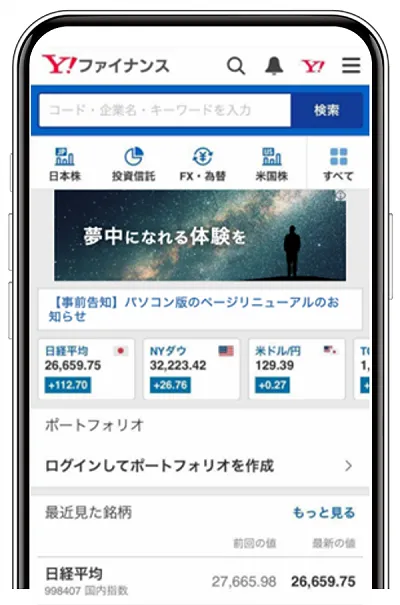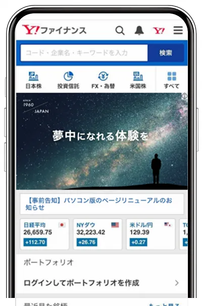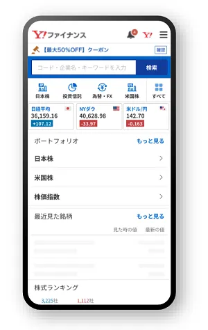 日本最大級のメディア規模を誇るYahoo! JAPANが提供するサービスの中で、金融情報に特化したサービスである「Yahoo!ファイナンス」。リアルタイム株価、経済ニュースなど、投資に役立つ最新情報を提供している日本最大級の金融情報サイトです。