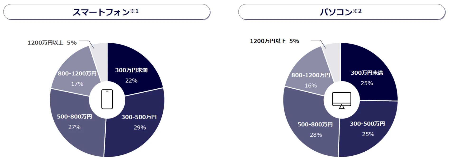 また、預貯金、株式、投資信託などの金融資産を3000万円以上持つユーザーが半数を占め、ユーザーの5人に1人が平均年収800万円以上と比較的高いことも特徴です。