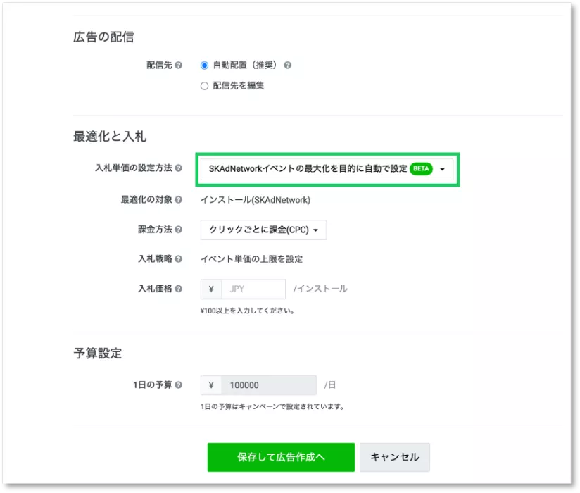 SKAdNetwork計測のコンバージョンを対象とした自動入札(β)