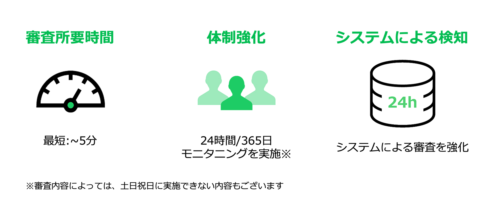 広告審査は、入稿されたすべての広告(クリエイティブ、テキスト、LP)を対象に、システムと目視で随時行なっています。システムによる審査の強化、モニタリングの体制強化で、一部の広告において、広告入稿から広告配信までの時間が大幅に短縮されます。審査所要時間は最短で5分となります。(※)
