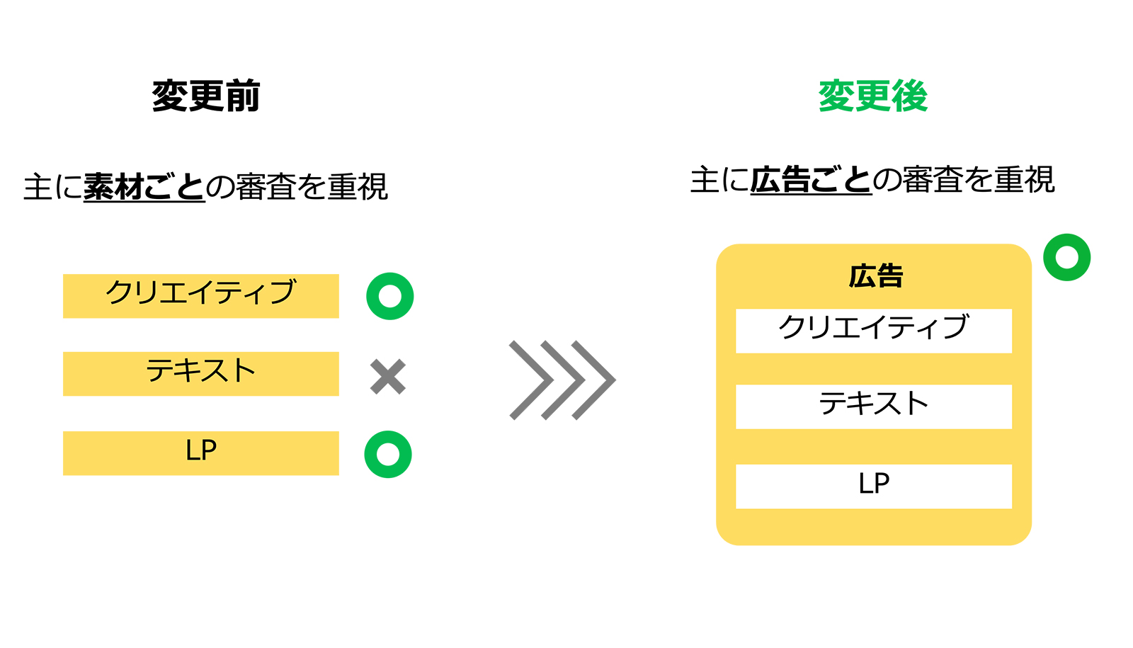 「素材」ごとの審査から「広告ごと」の審査重視へ