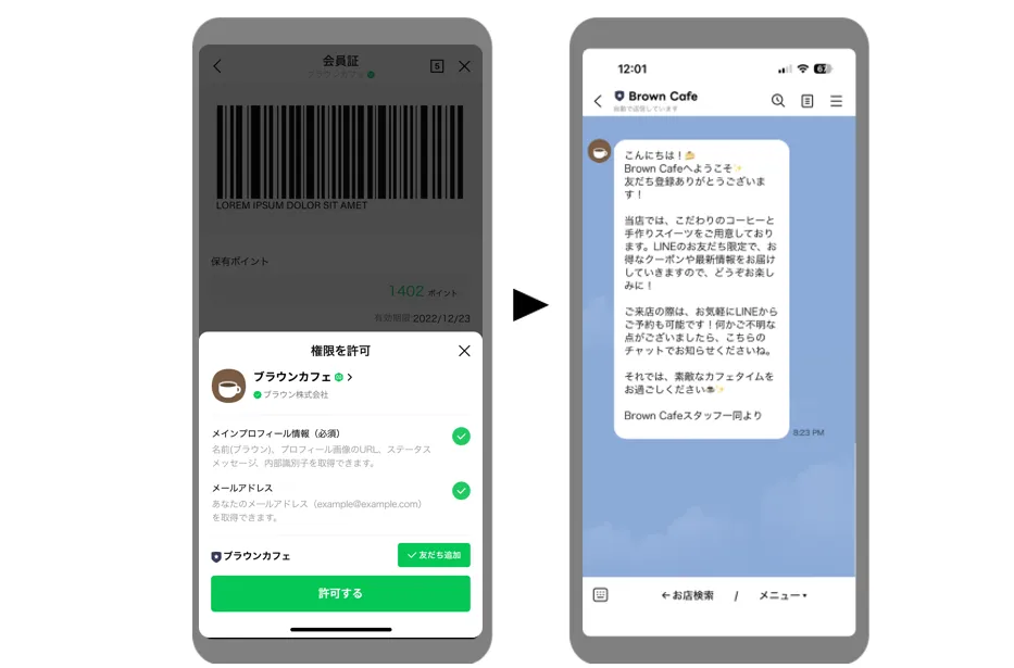 アクセス許可画面に友だち追加オプションが表示され、ユーザーが自然にLINE公式アカウントを友だち追加できます