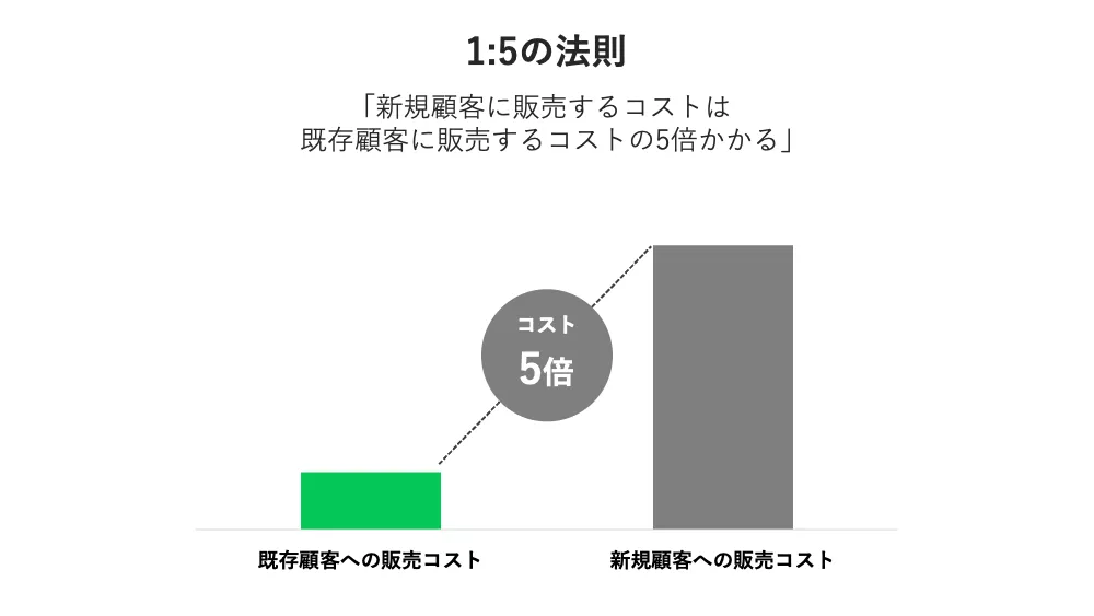 リピート数を目標に設定することで、効率的に売り上げ増加を目指せます。新規顧客を獲得するには、既存顧客に再度購入してもらうより5倍の労力がかかるとされているため、過去に購入したユーザーに再購入してもらえるかが重要です。