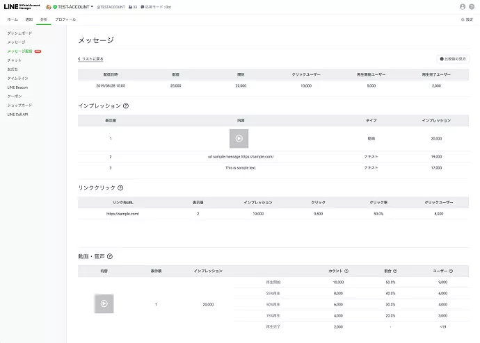 閲覧方法についてはLINE公式アカウントの管理画面マニュアルをご覧ください。