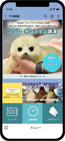 大阪の水族館「海遊館」では、リッチメニューにECサイトへの導線のほか、営業時間やニュースページへの案内、eチケットへの導線など、海遊館に来館するユーザーにとって便利な情報を掲載しています。ユーザーが一目見て分かりやすいよう、シンプルで分かりやすいクリエイティブを重視したところ、ユーザーに届けたい情報であるニュースページへの遷移も促せています。