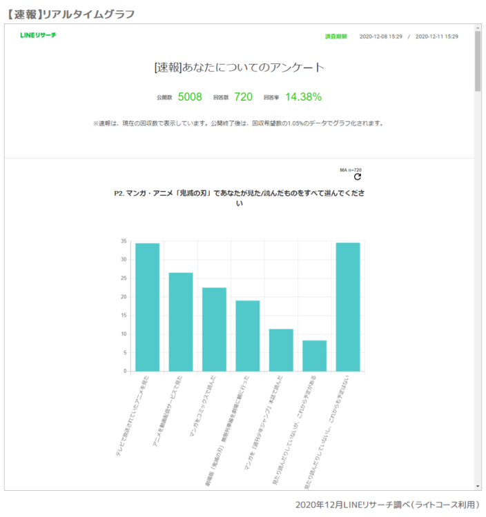 公開後2時間程度で半数以上の回答が集まったため、「リアルタイムグラフ」を利用することでだいたいの傾向を掴むことができました。