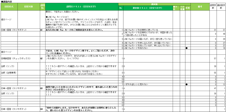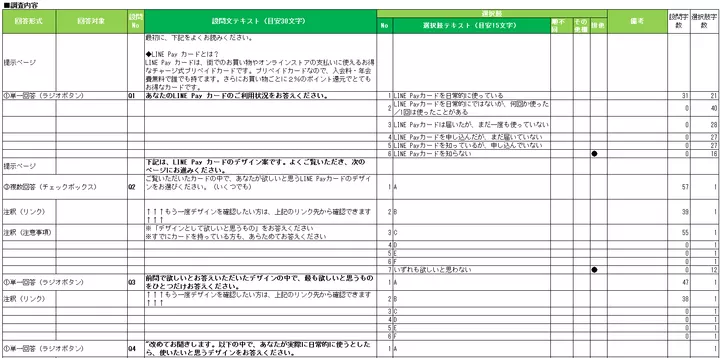 ▼調査票フォーマットのサンプル(設問文、選択肢、条件)