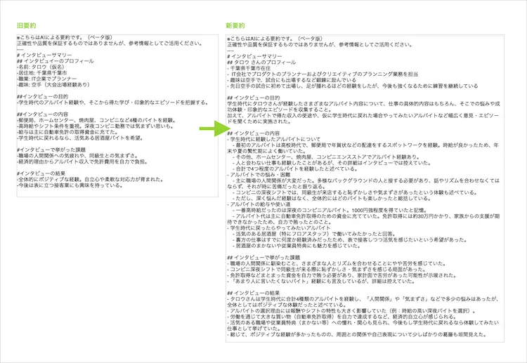 インタビュー実施後の生成AIによる要約ファイルの精度が向上しました