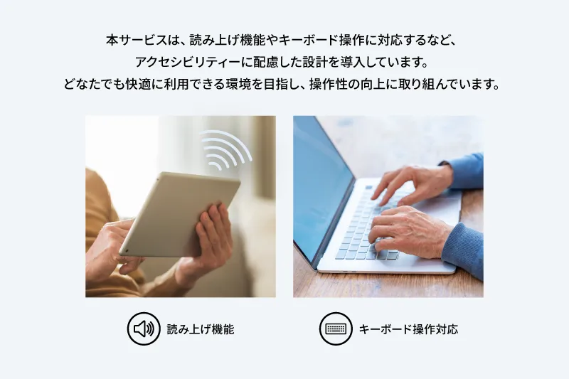 | 障がいのある方でも使える | アクセシビリティーに配慮した設計 |