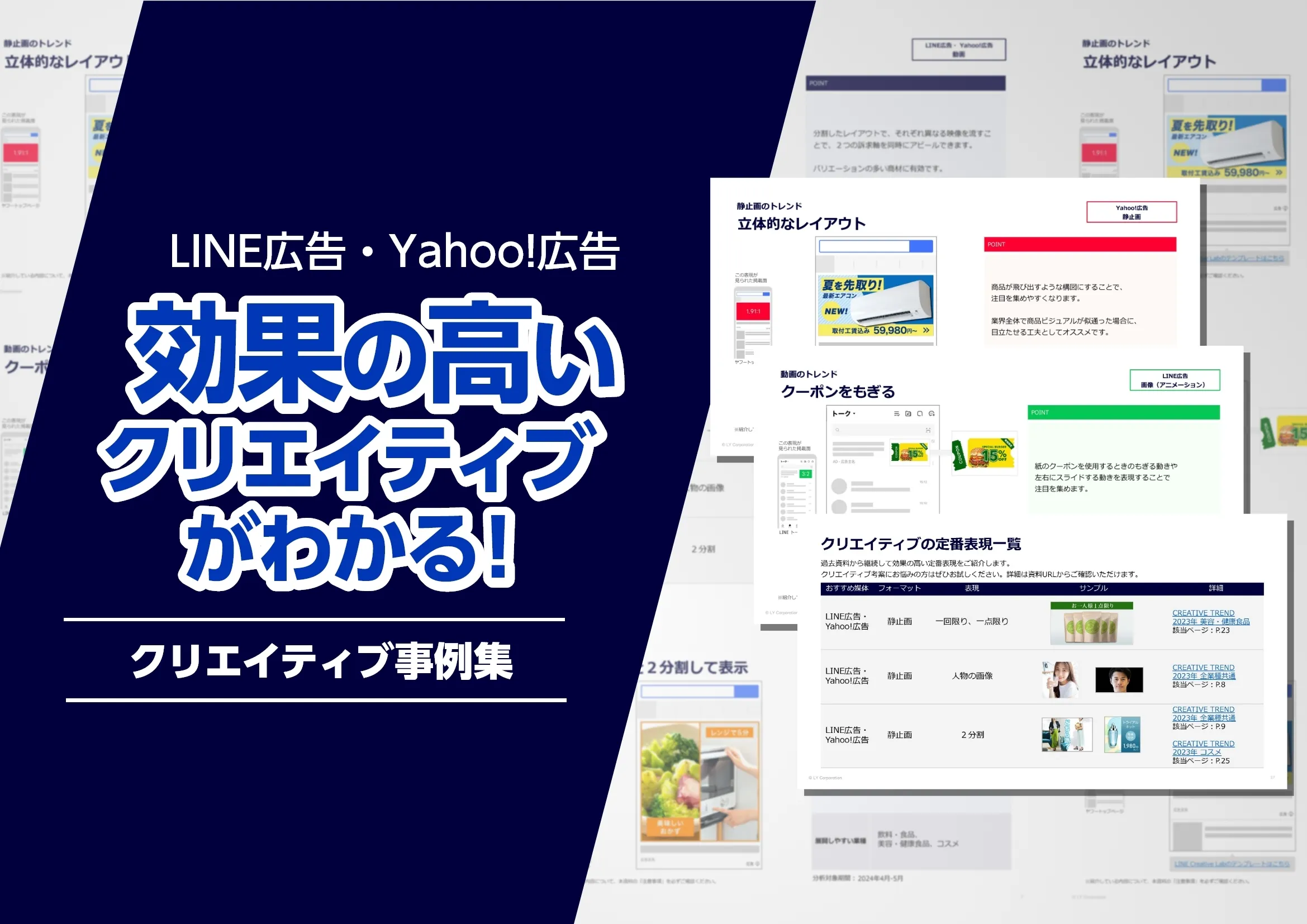 LINE広告・Yahoo!広告共通でみられた傾向と、LINE広告・Yahoo!広告独自でみられた傾向や、効果の出やすいクリエイティブイメージも併せて掲載していますので、構想・考案にすぐに役立てることができます。