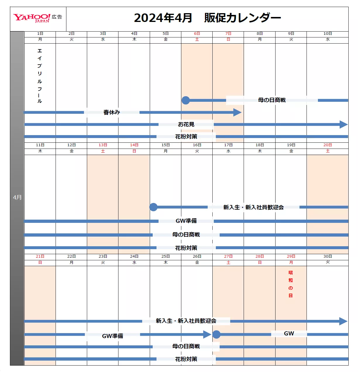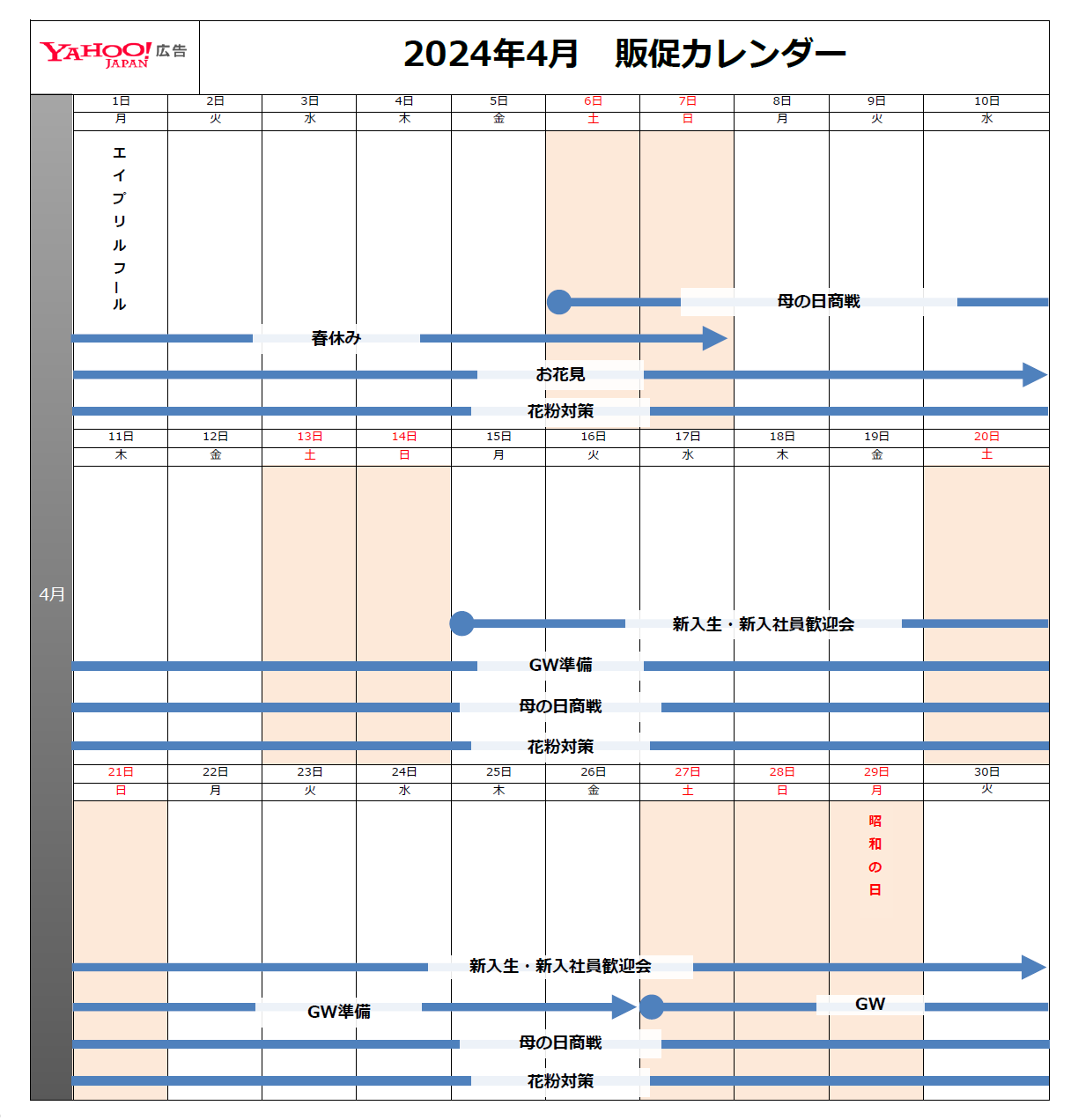 2024年の4月に前月より検索数が急上昇するキーワード、急下降するキーワードを前年の傾向から予測してお届けします。ぜひ広告出稿にお役立てください。