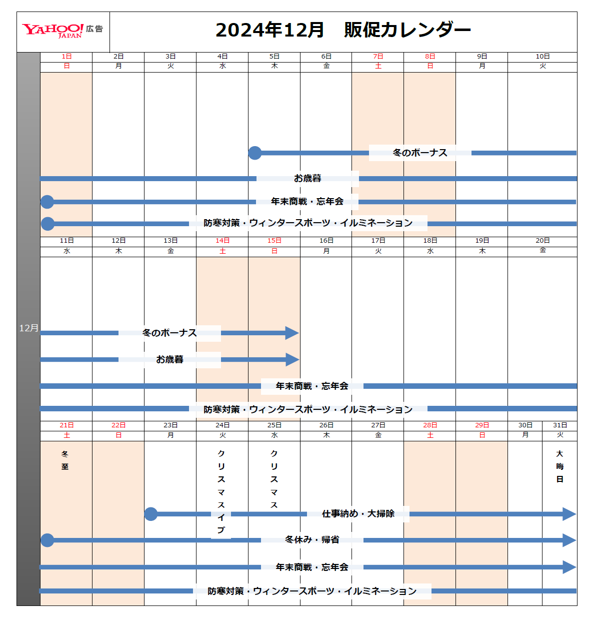 2024年12月版 販促カレンダー