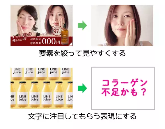 上下や前後の情報に埋もれずに、目に入った瞬間に興味を引くことができるような表現を意識しましょう。