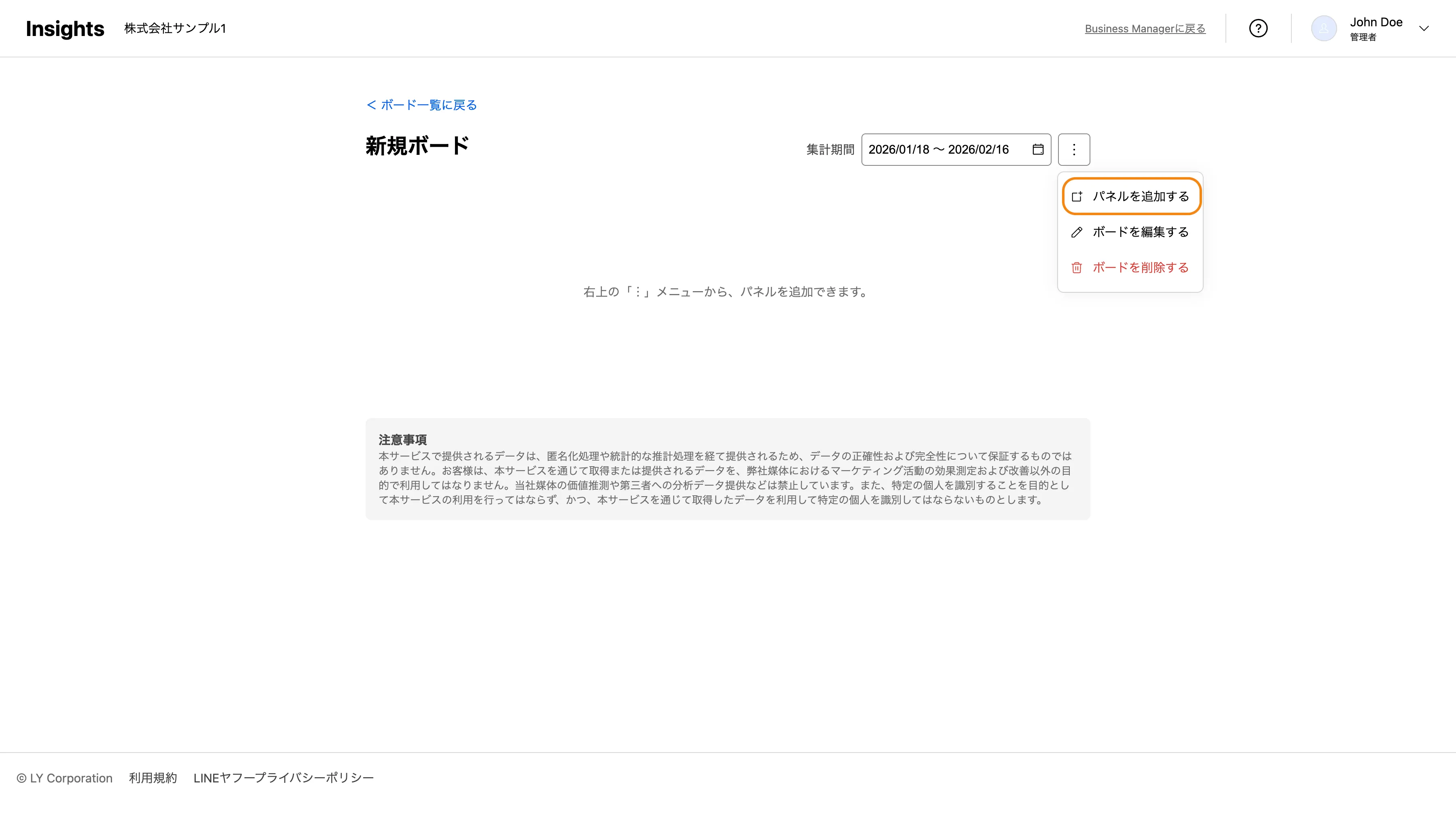 可視化データは、ボードとパネルという単位で作成されます。データを可視化するために、まずボードを作成します。