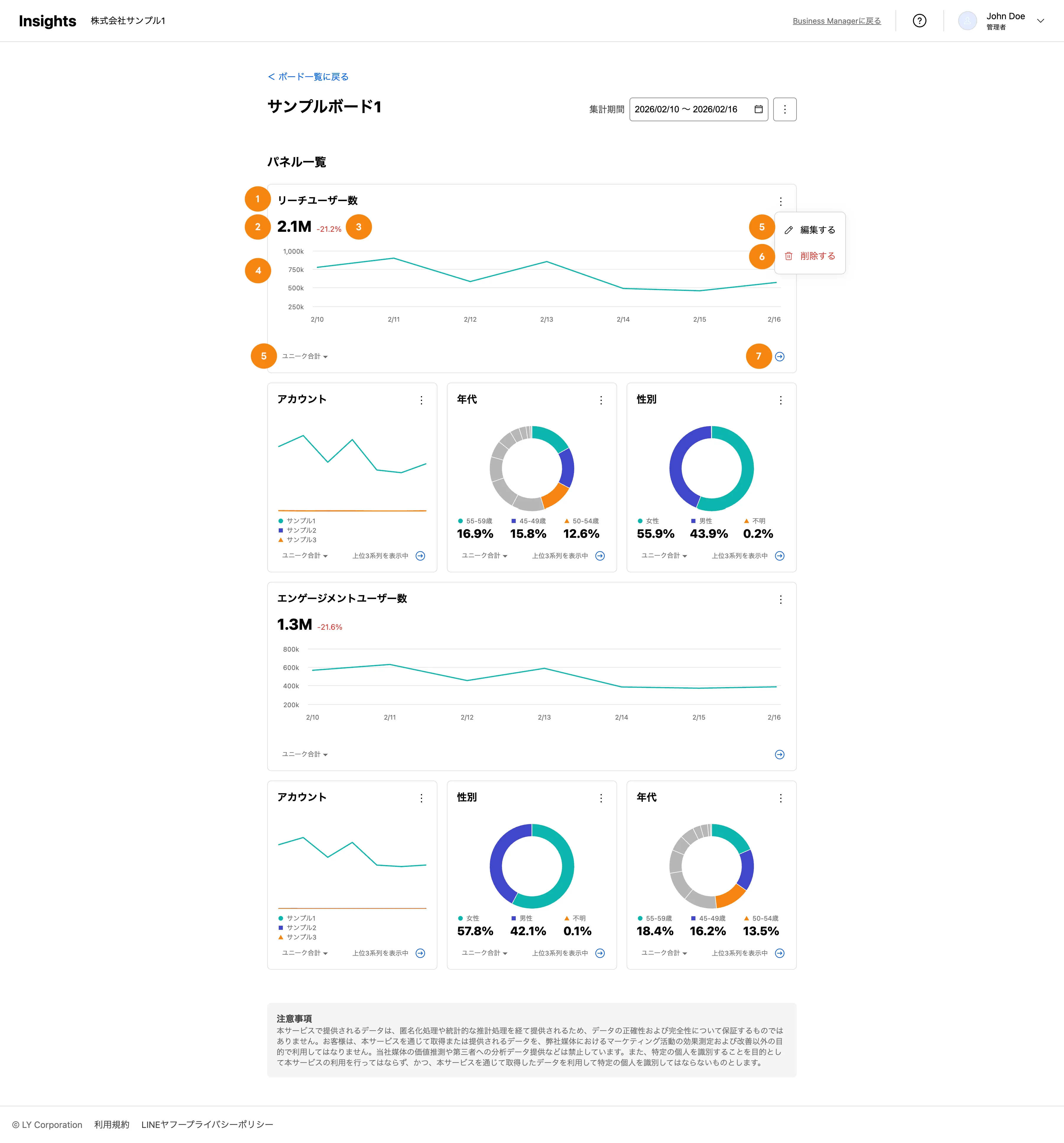 編集する:パネルの設定を編集します。パネルタイプ、集計対象以外の項目を変更可能です。
