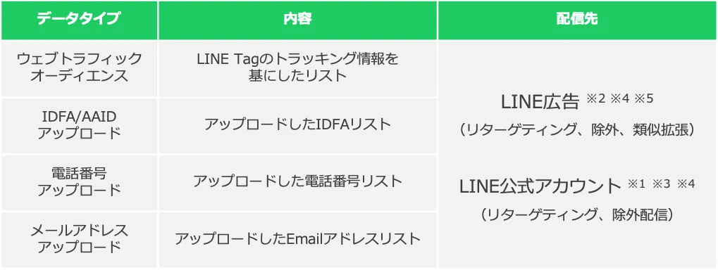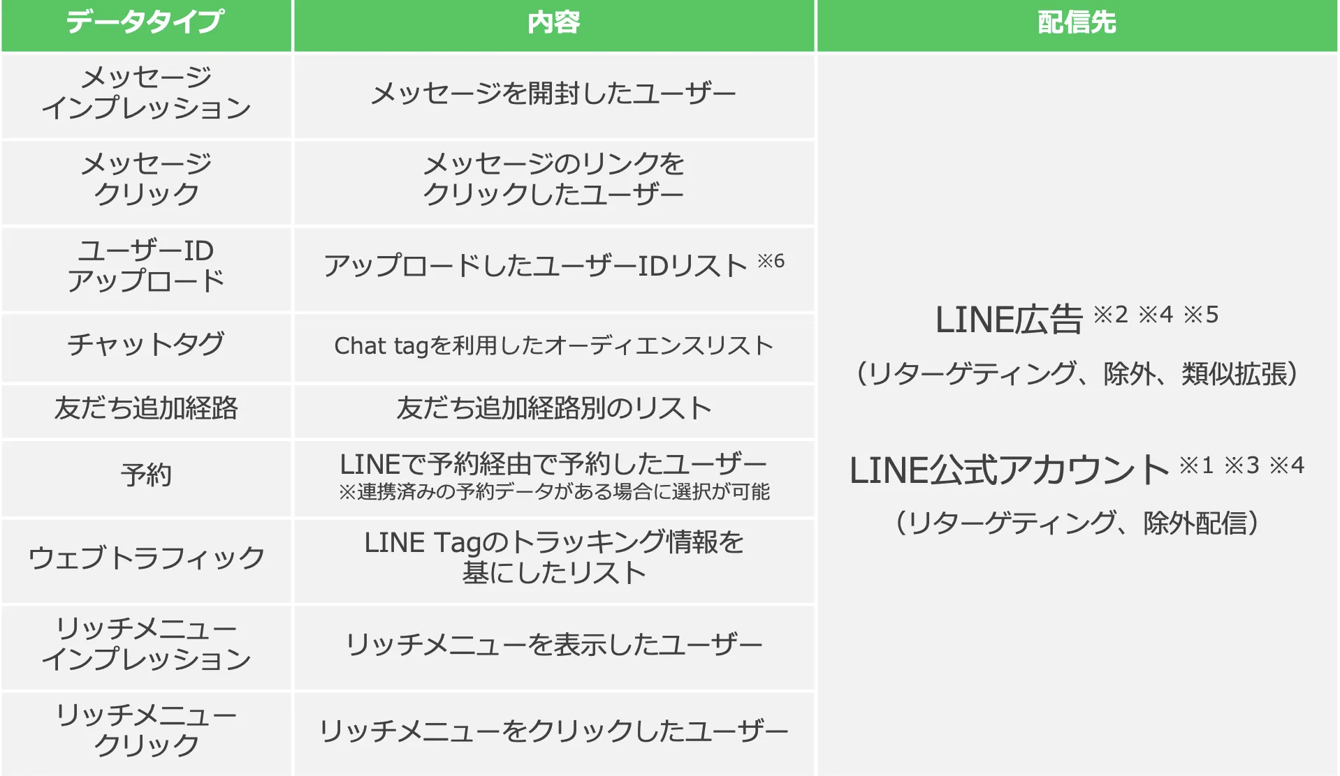 ※1 LINE公式アカウントが「認証済アカウント」である場合のみ配信への利用が可能となります。