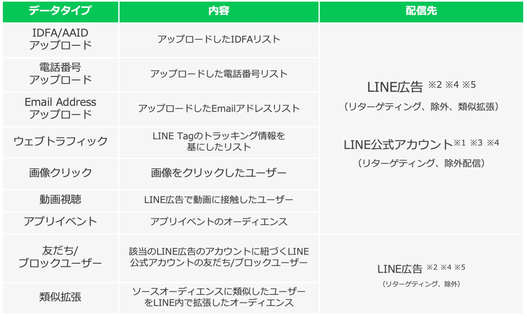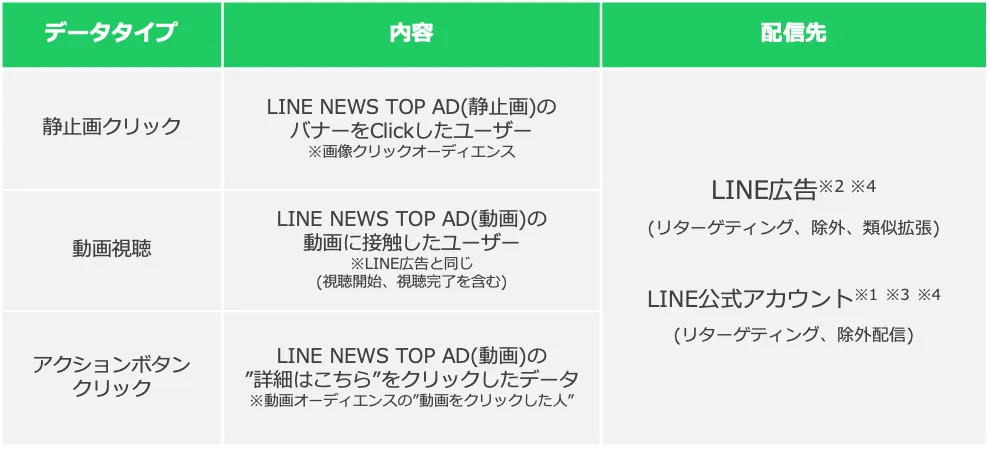 LINE NEWS TOP ADの共有できるオーディエンス一覧