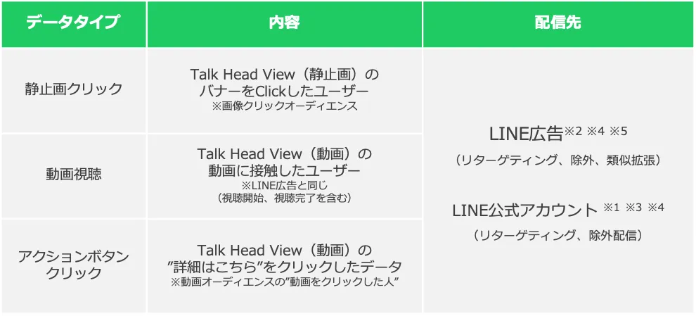 ※6 Talk Head View Customの配信結果もオーディエンスとして利用できます。利用できるオーディエンスはTalk Head Viewと同様です。