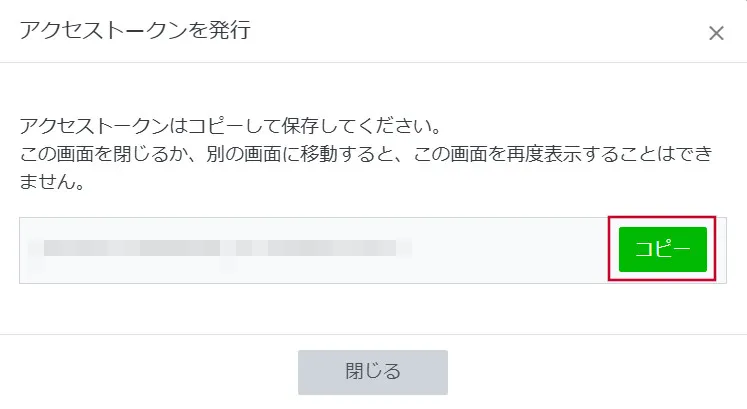 ※アクセストークンはこの画面を閉じると再度表示できないため、コピーのうえ保存してください。