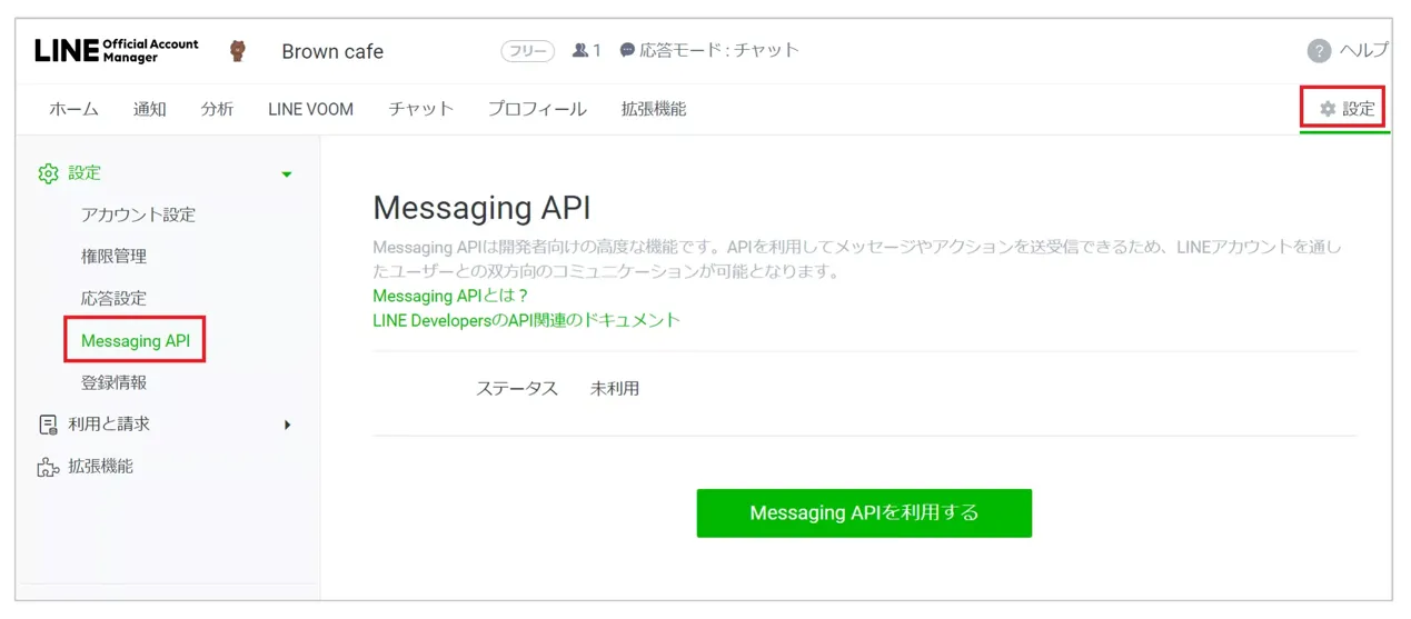 Messaging APIの利用を有効にします。WEB版管理画面からのみ設定いただけます。