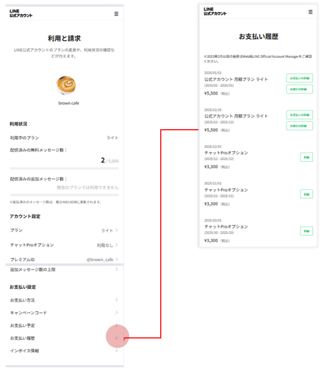 ※「お取引の詳細」は2026年1月26日以降の支払い分から表示されます。2026年1月26日より前の支払い分は「お支払いの詳細」が適格請求書様式で表示されます。