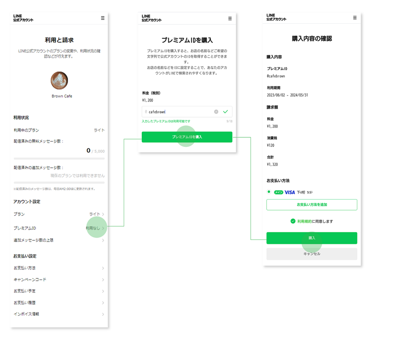 希望のプレミアムIDを入力し、利用可能か確認後に「プレミアムIDを購入」を選択します。