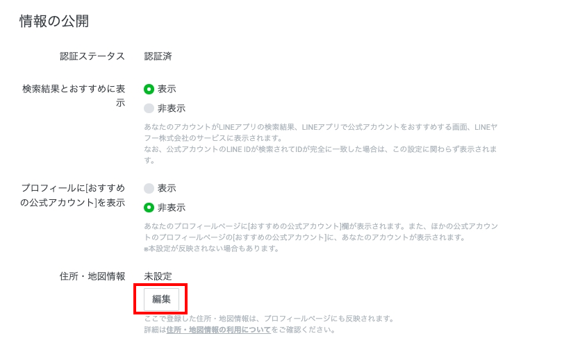 ③ビジネスプロフィールで住所・地図情報を設定してください