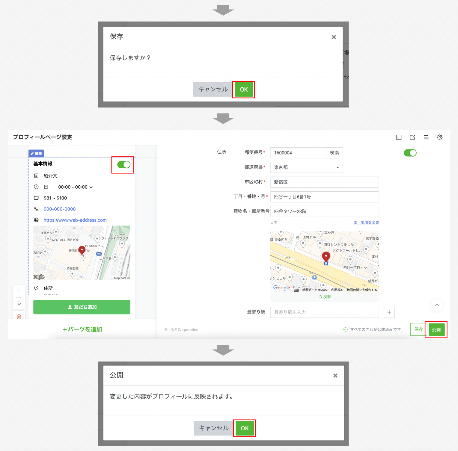 - 8.公開確認の画面が表示されるので、「OK」をタップする