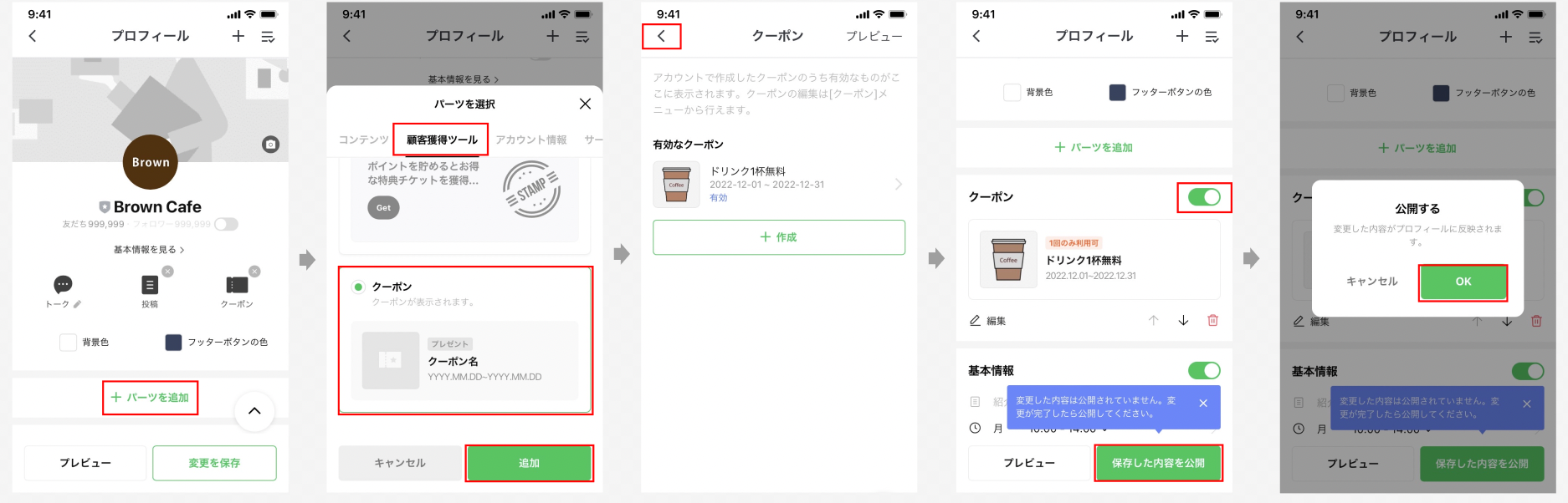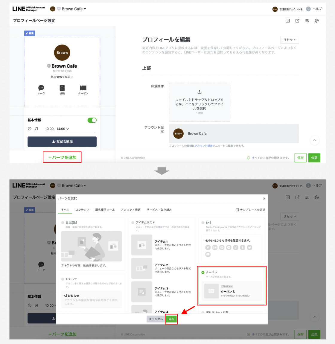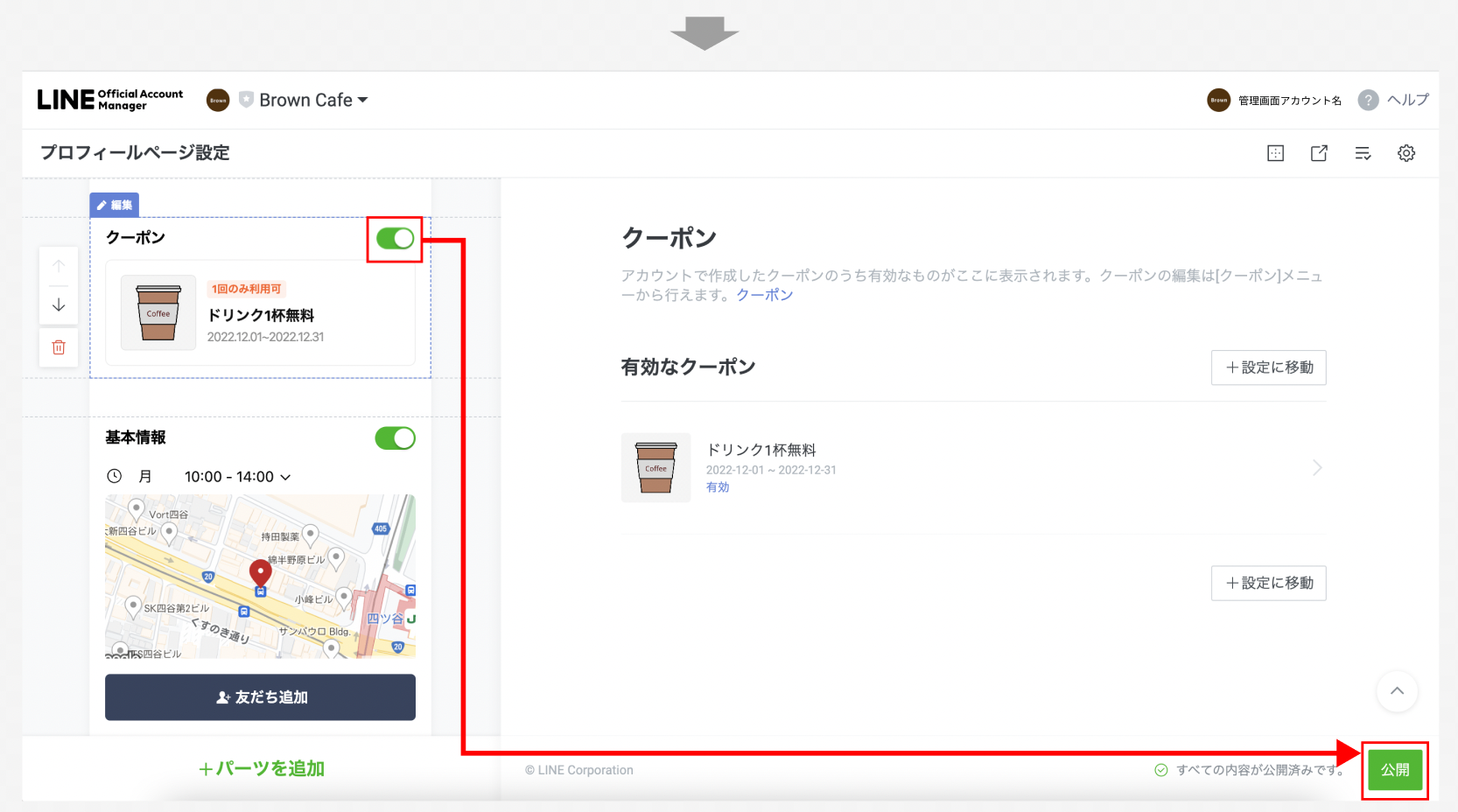 プロフィールにクーポンを掲載する場合、以下の設定を行なってください。