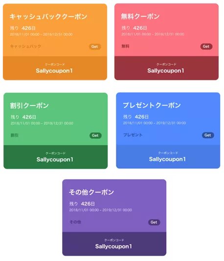 ヘッダ部分の色はクーポンタイプごとに異なります