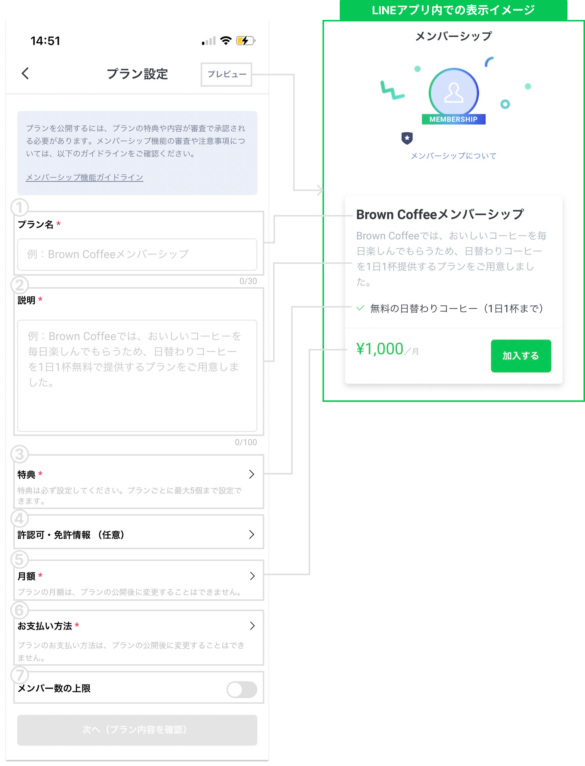 ここで登録した情報は、LINEユーザーがメンバーシッププランを購入する時に確認できます。