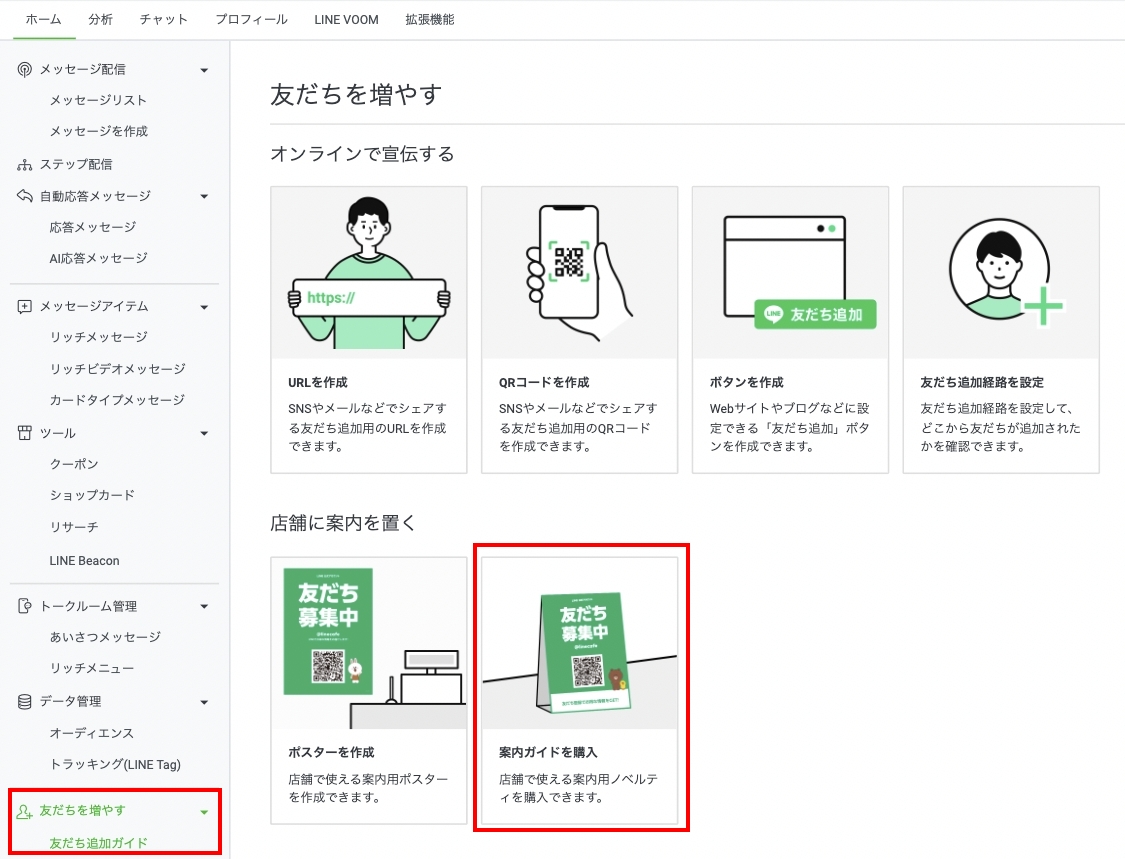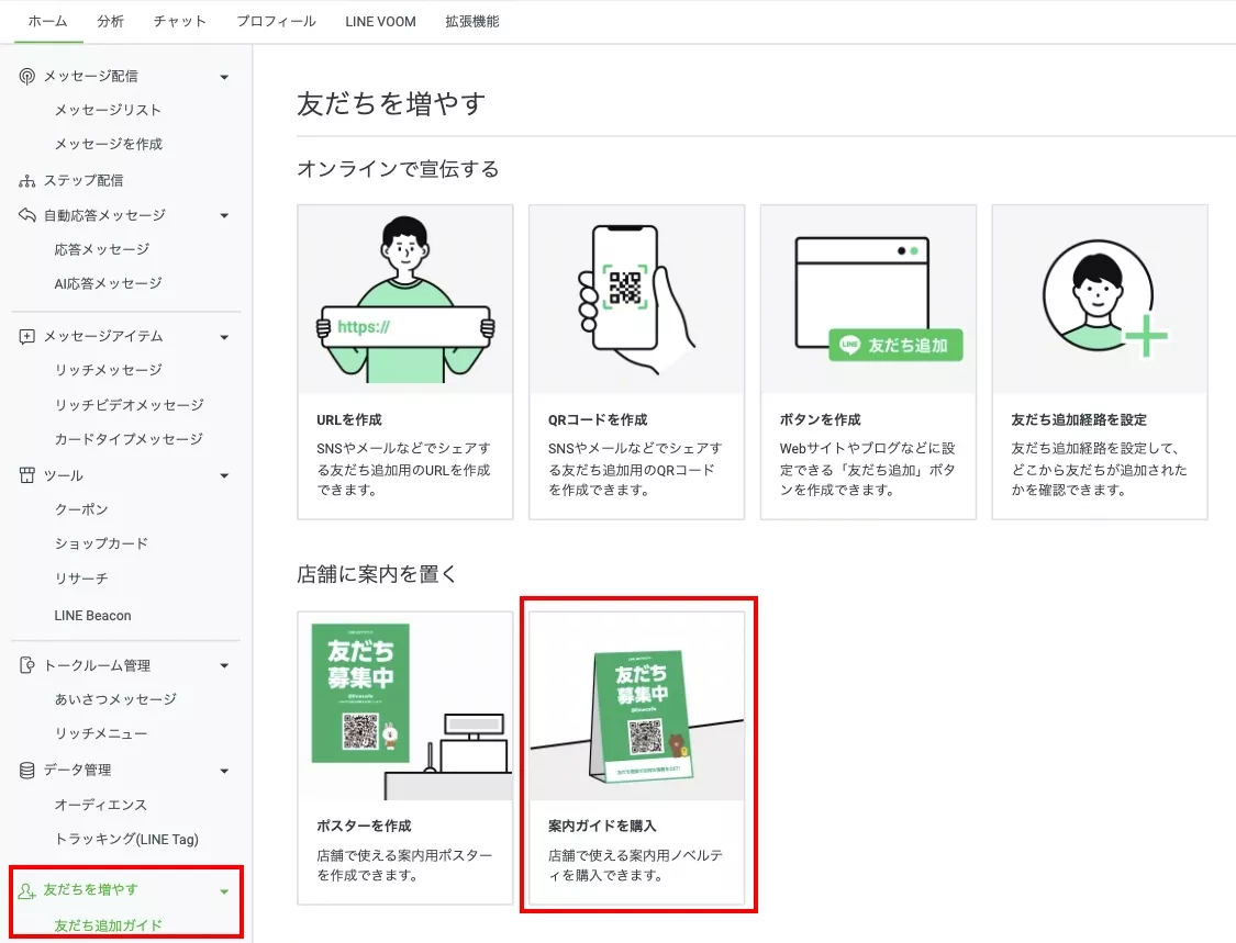 1.「友たち追加ガイド」→「 案内ガイド」を選択します